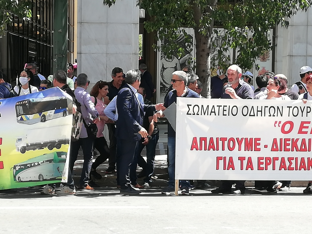 Ο Νίκος Ηγουμενίδης συνομίλησε με τους εργαζόμενους από την Κρήτη που έφθασαν το πρωί στο λιμάνι του Πειραιά, με τους εκπροσώπους των σωματείων των εργαζομένων και του Εργατικού Κέντρου Ηρακλείου, και μαζί με συναδέλφους του βουλευτές στήριξε τα αιτήματα των εργαζομένων.