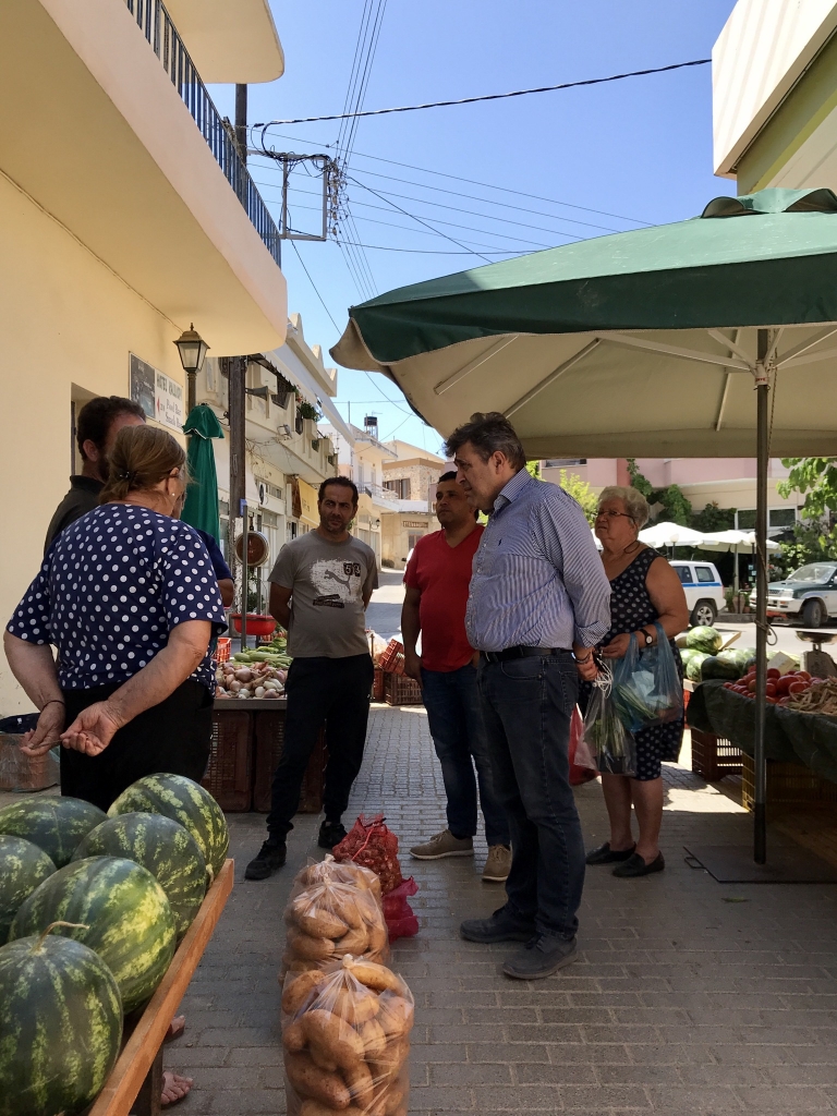 Παράλληλα, ο Νίκος Ηγουμενίδης δεν παρέλειψε να δώσει το παρών και στην τοπική αγορά του Καστελλίου, συνομιλώντας εκτενώς με τους πωλητές αλλά και κατοίκους της περιοχής για όλη την επικαιρότητα και το πλήγμα που δέχεται η τοπική οικονομία λόγω του κορωνοϊού και της ανεπάρκειας των μέτρων της Κυβέρνησης.